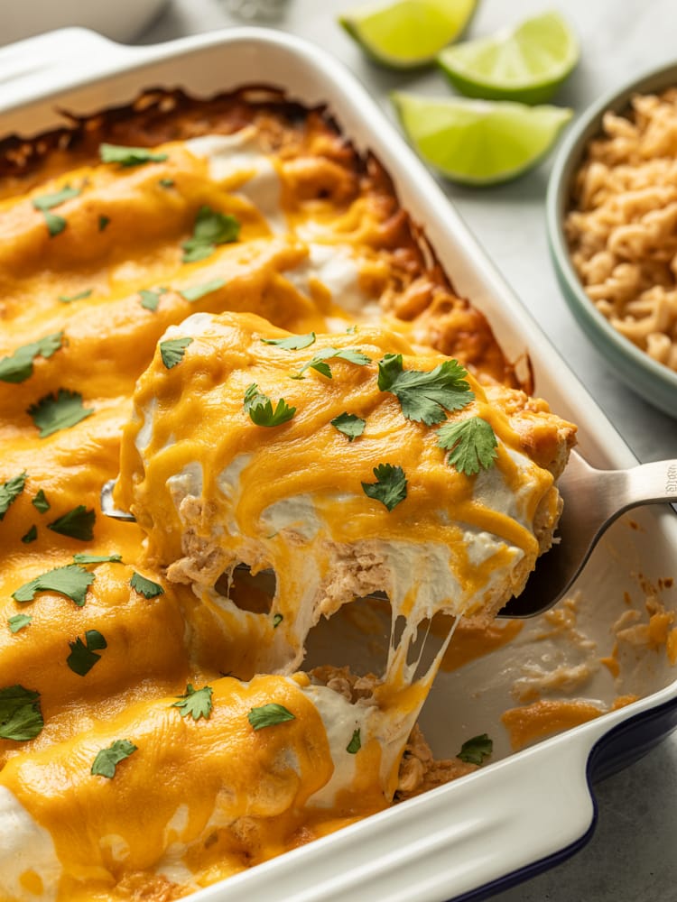 This creamy, cheesy, and comforting Sour Cream Chicken Enchilada Casserole is a family-favorite Mexican-inspired dish. Tender shredded chicken is layered with soft tortillas, a rich sour cream and green chili sauce, and gooey melted cheese, baked until golden and bubbly. Perfect for weeknight dinners, gatherings, or meal prep, this easy casserole delivers all the flavors of classic enchiladas in a fuss-free layered style.