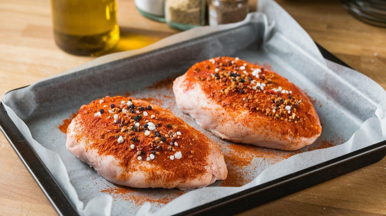 - Season the chicken breasts generously with a mix of cumin, chili powder, smoked paprika, salt, and pepper.