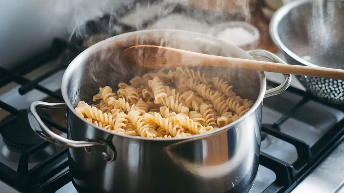Boil rotini pasta in salted water according to package instructions. Drain and rinse with cold water to stop cooking. Set aside.