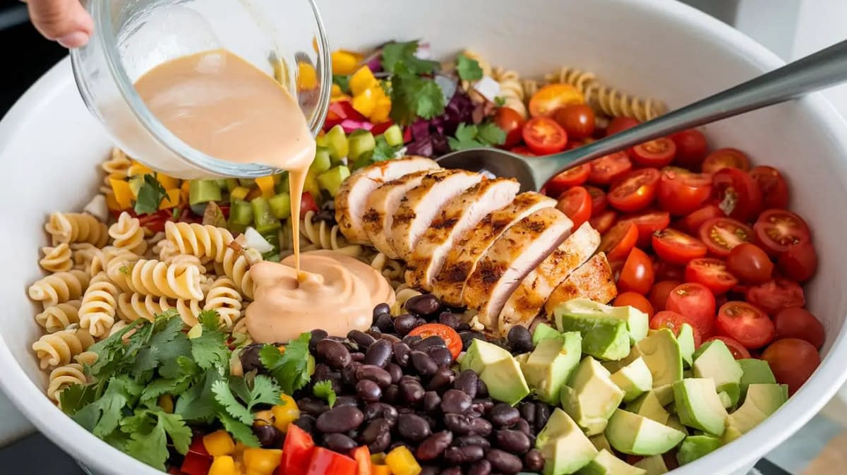 A zesty and satisfying Southwest Chicken Pasta Salad bursting with bold flavors! Packed with juicy chicken, colorful veggies, and a tangy creamy dressing, this easy-to-make dish is perfect for picnics, potlucks, or a quick weeknight dinner.