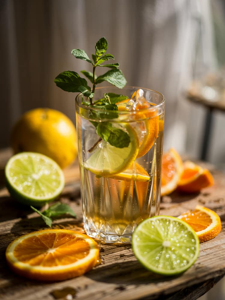 Garnish each glass with thin slices of citrus and a sprig of fresh mint. Serve immediately for maximum refreshment and visual appeal.