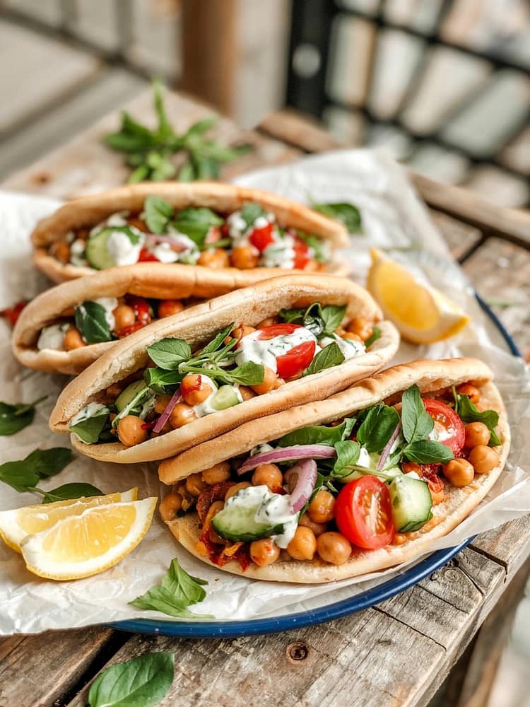 This Spiced Chickpea Pita with Herby Yogurt Sauce is a quick and healthy meal packed with flavor and texture. Roasted chickpeas seasoned with warm spices are tucked into soft pita bread and topped with a refreshing, creamy herb yogurt sauce. Perfect for a weeknight dinner or light lunch, this Mediterranean-inspired dish is budget-friendly, vegetarian, and highly satisfying.