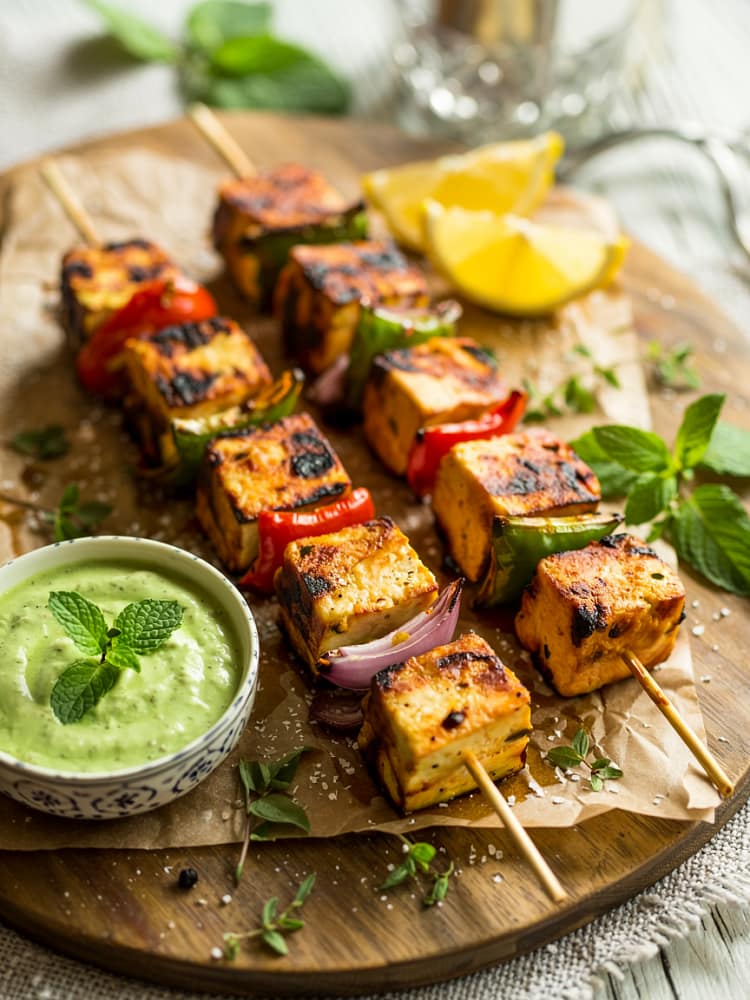 Spicy Paneer Tikka Skewers with Mint Chutney Recipe