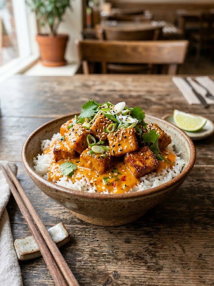 Spicy tofu with creamy coconut sauce is a dish that proves plant-based cooking can be deeply satisfying and full of bold flavor. The combination of crispy tofu and silky coconut chili sauce creates a comforting meal that feels both simple and special.