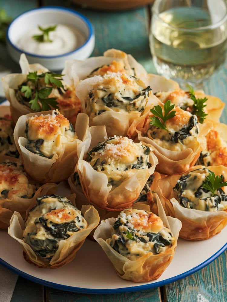 These Spinach and Artichoke Dip Bites are the perfect bite-sized appetizer for any occasion! Crispy, golden phyllo cups hold a creamy, cheesy spinach and artichoke filling, making them an irresistible party snack. With a blend of cream cheese, Parmesan, and mozzarella, these bites are a crowd-pleaser and easy to prepare.