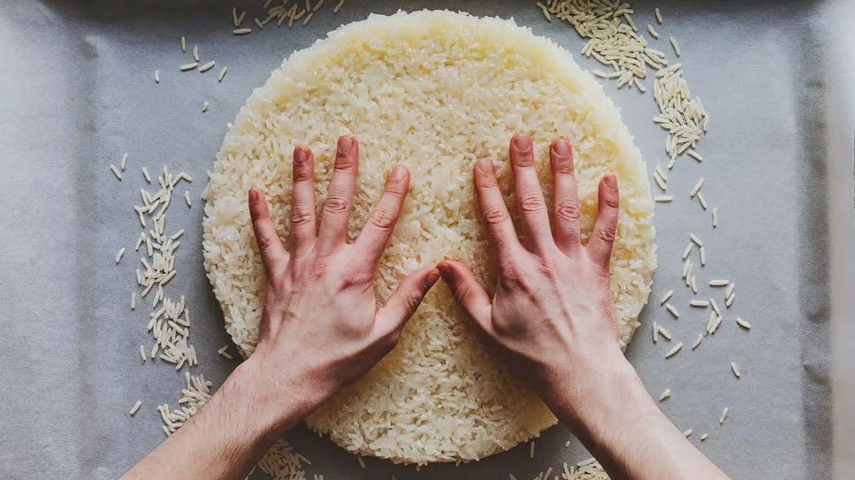 Place the prepared rice base into the preheated oven and bake for about 15 minutes, or until the edges become golden and crispy. Keep a close eye to prevent burning. Once baked, remove the rice base from the oven and allow it to cool slightly on the baking sheet. This step ensures that the base maintains its structure when topped with fresh ingredients.