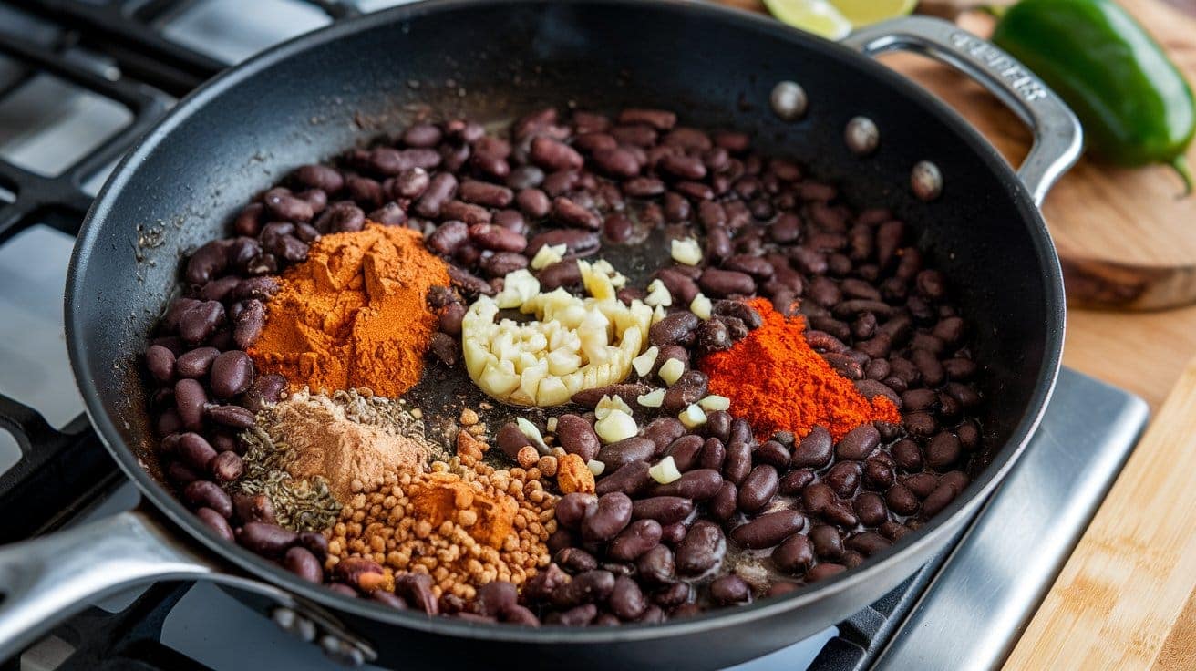 - Prepare the Bean Mixture: While the sweet potatoes are roasting, heat a skillet over medium heat. Add a little olive oil, then sauté the onion, bell pepper, and garlic until softened and fragrant. Add the black beans and cook for another 5 minutes, stirring occasionally. Season with salt and pepper.