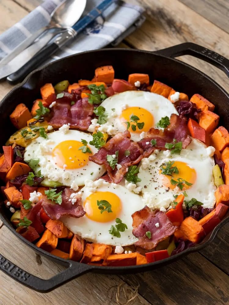 The Sweet Potato Breakfast Skillet is a hearty, nutritious, and flavorful one-pan meal that’s perfect for starting your day with energy. Packed with tender sweet potatoes, savory vegetables, crispy bacon, and sunny-side-up eggs, this dish balances sweet and savory notes seamlessly. Its origin lies in combining the best of breakfast staples with a healthy twist, making it a delightful addition to any morning table.
