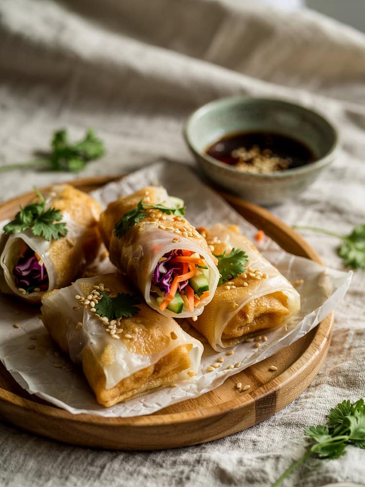 Allow the rolls to rest for 2–3 minutes after frying. Serve warm with dipping sauce. Garnish with extra sesame seeds or coriander for a beautiful presentation.