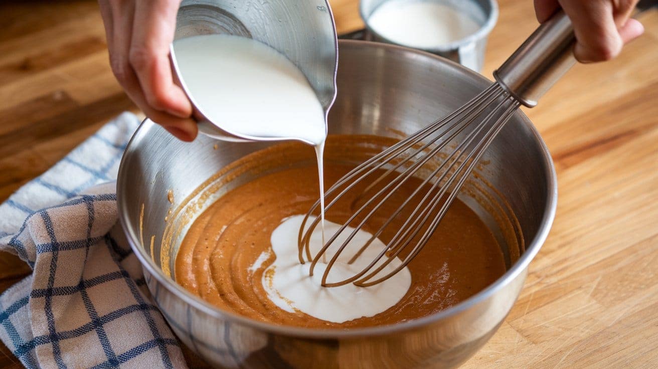 Gradually add coconut milk or water, whisking continuously, until the sauce reaches your desired consistency—smooth and pourable but still rich.