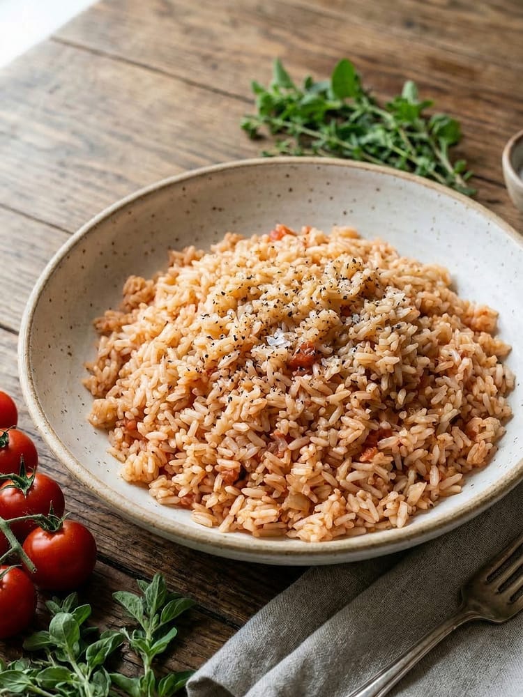 A fragrant and comforting Tomato Basil Rice Pilaf made with ripe tomatoes, fresh basil, and perfectly cooked rice. This easy stovetop dish is light, flavorful, and ideal as a side or a simple main, combining classic Mediterranean-inspired ingredients into a wholesome, budget-friendly meal.