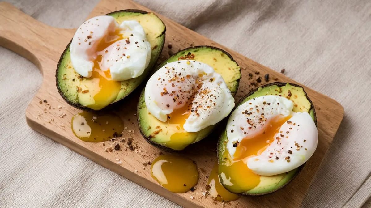 For the Mediterranean twist, arrange halved cherry tomatoes, crumbled feta cheese, and sliced Kalamata olives over the avocado and eggs. Drizzle with extra virgin olive oil and sprinkle freshly chopped oregano on top to enhance the flavors.