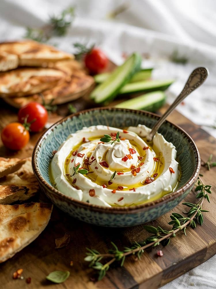Whipped feta is a creamy, smooth dip made by blending feta cheese with a liquid base like Greek yogurt, cream cheese, or olive oil. It transforms the typically crumbly feta into a luscious spreadable consistency while preserving its bold, salty flavor.