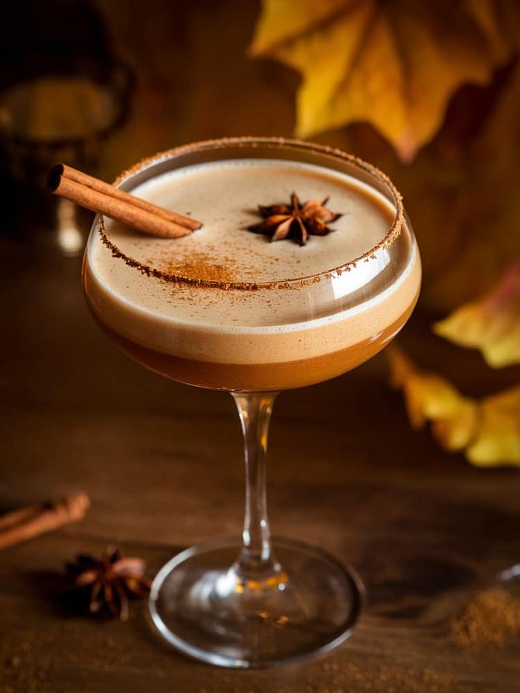 Strain the mixture into a chilled martini glass. Lightly dust the top with ground cinnamon. Garnish with a cinnamon stick and a star anise for an elegant touch.