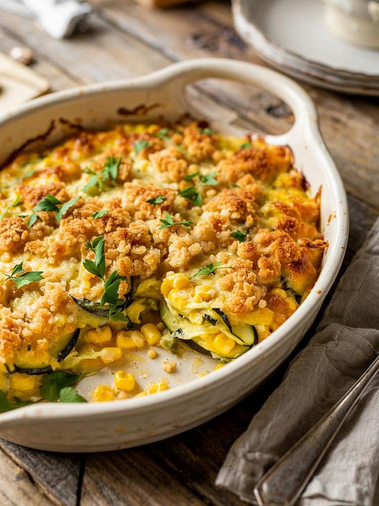 This Zucchini & Sweet Corn Casserole is a creamy, cheesy, and comforting dish made with fresh summer vegetables and savory herbs. It's the perfect side dish for barbecues, weeknight dinners, or holiday spreads. Packed with seasonal flavor and a golden, crispy top, this recipe brings together the best of summer in one baked dish.